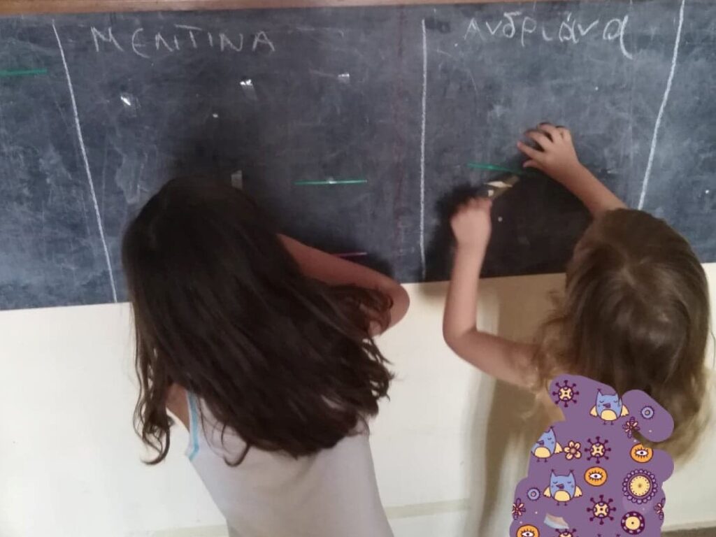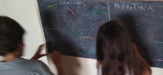 *Χωρίζουμε τον πίνακα σε τόσα μέρη, όσα είναι τα παιδιά που έχουμε στον χώρο! (παιδιά, ανίψια, φίλοι, συμμαθητές, κτλ.) και γράφουμε στην κάθε πλευρά τα ονόματά τους.