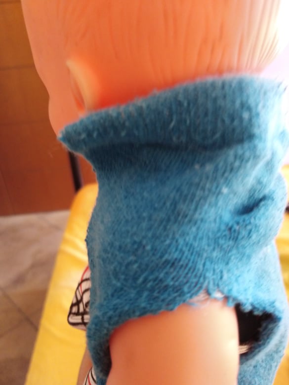 Λίγο πριν τα πρόθυρα ασφυξίας, τη βγάλαμε και την μετατρέψαμε σ’ ένα ωραιότατο τζάκετ για την κούκλα: