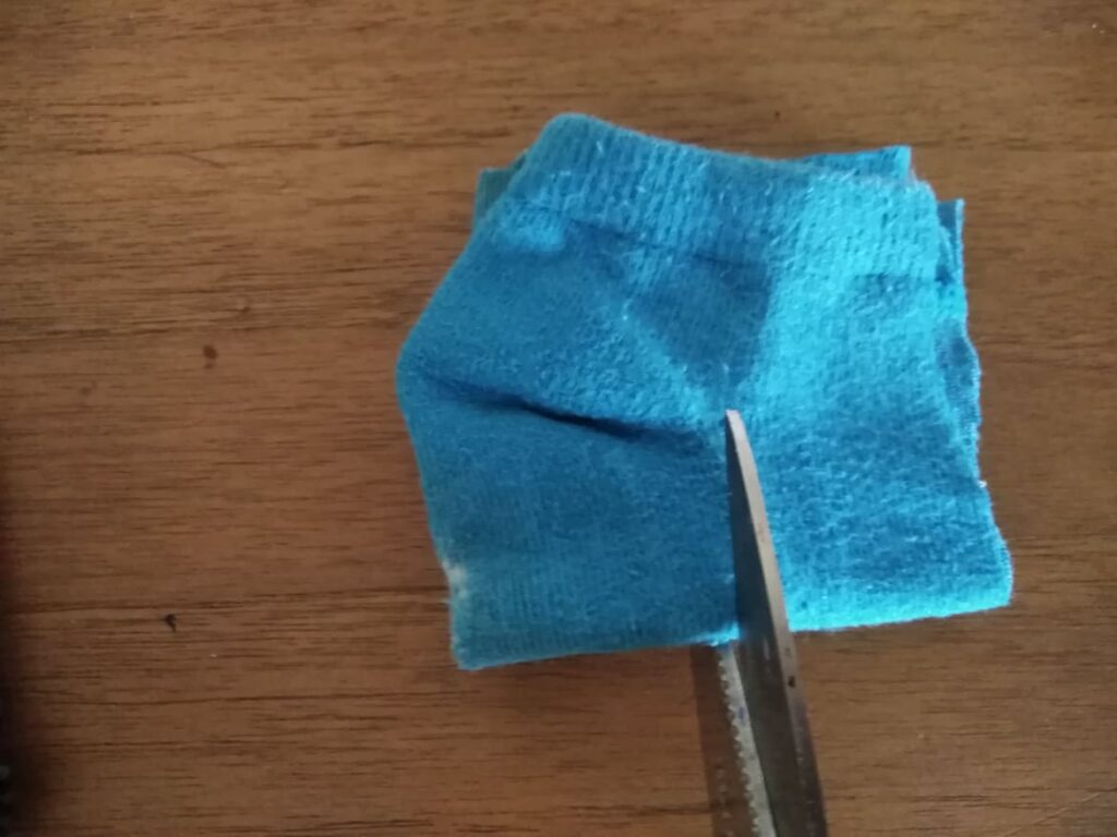 Ξεκινήσαμε, λοιπόν, να φτιάξουμε μια μάσκα από κάλτσα, ακολουθώντας πιστά τις οδηγίες του παρακάτω βίντεο που είδα στο youtube: https://www.youtube.com/watch?v=JkCij7AZOi4