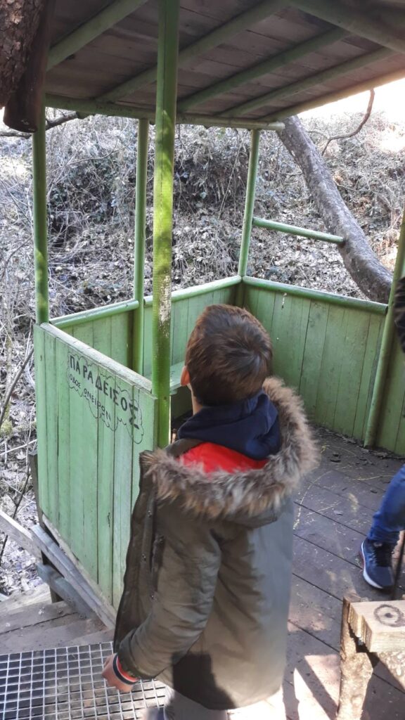 Επειδή όμως, θέλω να είμαι ειλικρινής και αντικειμενική, το δάσος έχει και κάποια μειονεκτήματα! Κάποια μονοπάτια του είναι απότομα και κρίνεται απαραίτητη η γονική συναίνεση και προσοχή, ενώ το μεγάλο παράπονο της μικρής μου κόρης ήταν άλλο: Δεν είχε καθόλου ζωάκια! Ούτε λαγουδάκια, ούτε σκιουράκια, ούτε καν ένα ελαφάκι! Και αυτός ο λύκος που τριγυρνά εις το δάσος… άφαντος! Ευτυχώς που υπήρχαν κάποια πουλάκια – Θεόσταλτα μάλλον- που δήλωναν την παρουσία του ζωικού βασιλείου και παρηγορούσαν τον καημό μας!!! Α, κι ένα γουρούνι, που το κοιτούσαμε καλά – καλά και μας έμοιαζε στη μούρη…