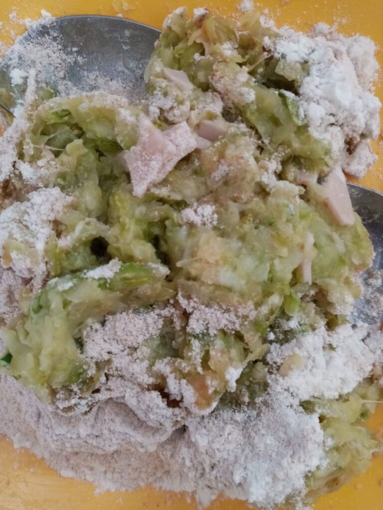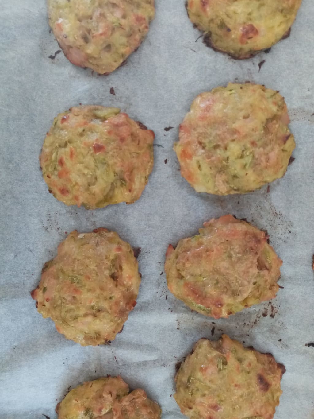Σε αντίθεση με τις πατάτες που πρέπει να είναι λιωμένες, τα κολοκύθια πρέπει να είναι τριμμένα στον τρίφτη. Μπορούμε να χρησιμοποιήσουμε και γλυκιά κολοκύθα!!! Επιπλέον, για τη συνταγή μας θα χρειαστούμε 1 κρεμμύδι, 1 τριμμένο καρότο, λίγο άνηθο και μαϊντανό, 1 φέτα γαλοπούλα κομμένη κομματάκια (προαιρετικά), φέτα ή παρμεζάνα, αλάτι – πιπέρι, ελαιόλαδο και αλεύρι ολικής ή γ.ο.χ. ή μισό – μισό ή βρώμη ή αλεύρι βρώμης!