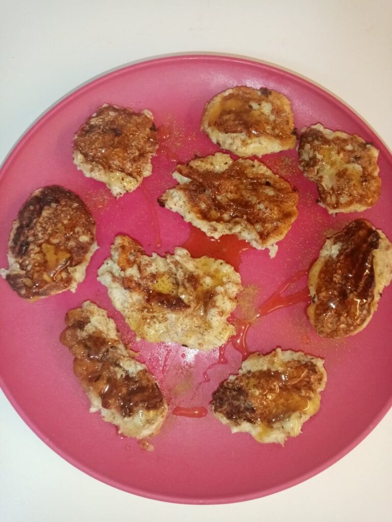 *Παίρνουμε κουταλάκι – κουταλάκι και τοποθετούμε σε αντικολλητικό τηγάνι, το οποίο έχουμε αλείψει με λίγο extra παρθένο ελαιόλαδο “Xρυσός Ελαιώνας”.