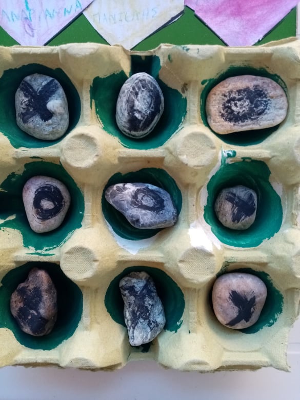 Χειροποίητη τρίλιζα από βότσαλα και αυγοθήκες