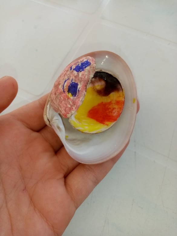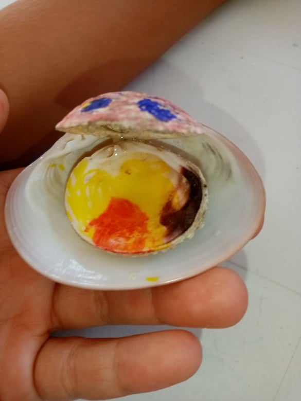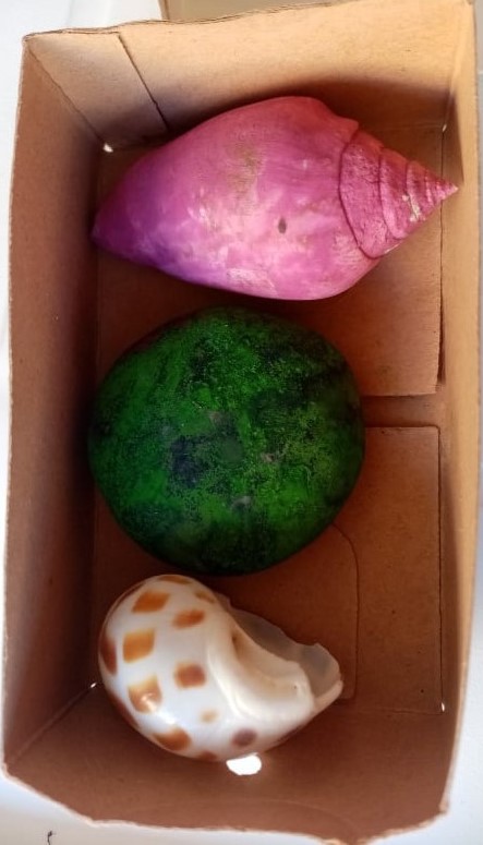 - Για να βάψουμε τα βότσαλα και τα κοχύλια χρησιμοποιούμε ακρυλικά χρώματα ή χρώματα ζωγραφικής.