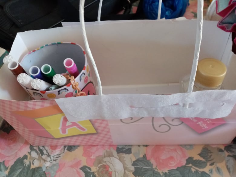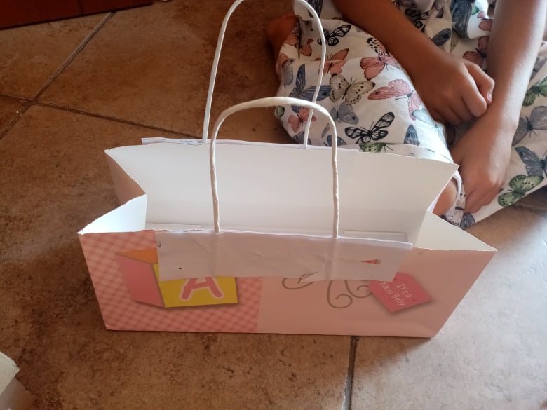Το μεγάλο μου κορίτσι, που φέτος θα πάει Α’ δημοτικού, είχε πολλή όρεξη για δημιουργία (όπως πάντα άλλωστε…) και ήθελε να φτιάξει ένα μεταφερόμενο κουτί (μιας και ακόμη πηγαινοερχόμαστε στο εξοχικό)! Έτσι, έκοψε την αγαπημένη της χάρτινη τσάντα (από τη βάφτισή της), χρησιμοποίησε το κάτω μέρος της ως βάση για μολυβοθήκες και στη συνέχεια, έκοψε τα χάρτινα χερούλια από μια άλλη τσάντα! Τα κόλλησε και έτοιμη για το γραφείο ή τη βόλτα!!!
