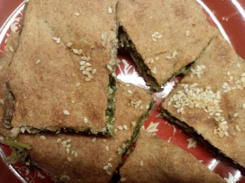 - Πασπαλίζουμε με λίγο σουσάμι και ψήνουμε σε προθερμασμένο φούρνο στους 180 βαθμούς στις αντιστάσεις για περίπου 45′ – 50′.