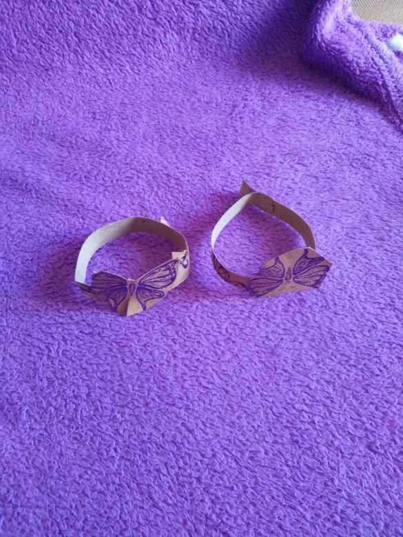 Κόβετε τα σχέδια της χάρτινης τσάντας περιμετρικά και τα κολλάτε πάνω σε μια χάρτινη ροδέλα που έχετε φτιάξει με το ρολό. Αν δεν έχετε τσάντα με σχέδια, μπορείτε να ζωγραφίσετε εσείς ό,τι σχέδιο θέλετε σ’ ένα χαρτόνι και να προσθέσετε και λίγο γκλίτερ!